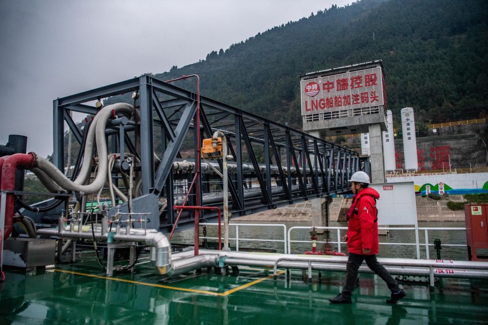 这是位于湖北宜昌市的中旖新能源LNG加注站码头(2023年11月30日摄)。新华每日电讯记者 唐奕 摄