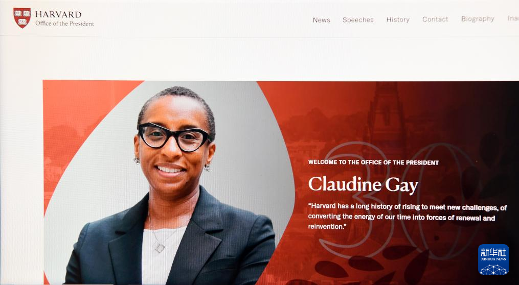 美国媒体1月2日报道,哈佛大学校长盖伊宣布辞职。这是1月2日拍摄的有盖伊照片的哈佛大学官网校长办公室页面。新华社记者李睿摄