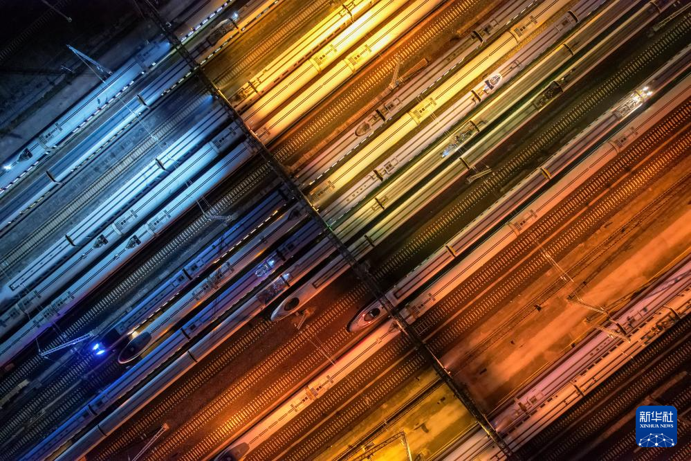 2023年1月6日,动车组列车停靠在贵阳北动车所内(无人机照片)。1月7日,2023年春运启动。