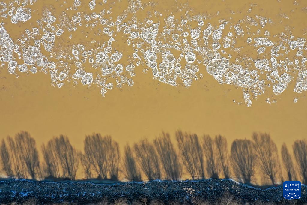 2023年1月27日在黄河济南泺口段拍摄的淌凌(无人机照片)。