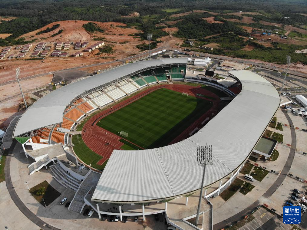 这是1月5日在科特迪瓦圣佩德罗市航拍的圣佩德罗体育场。