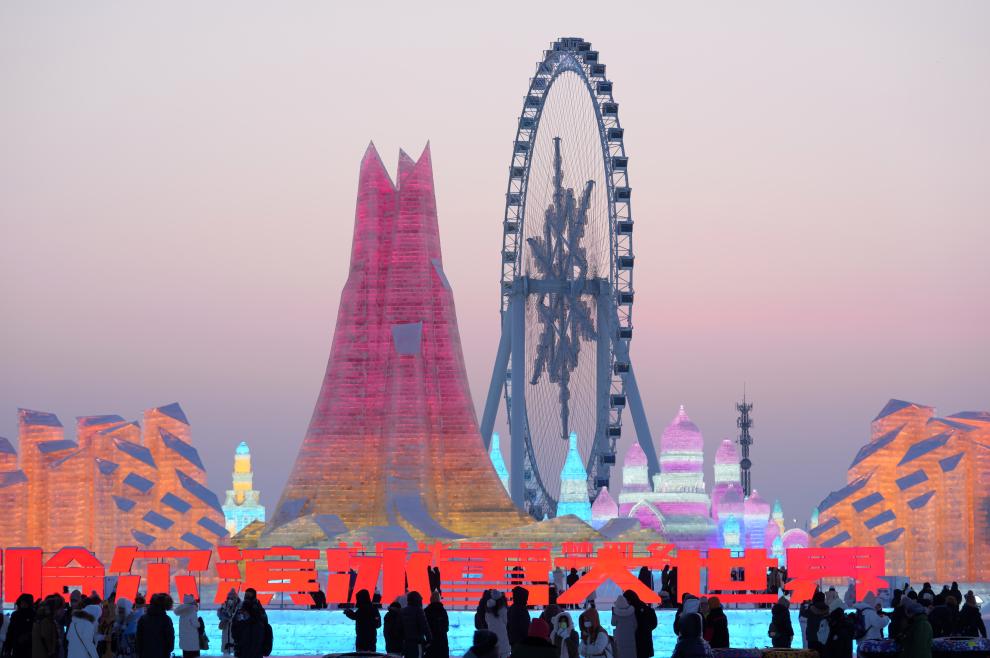 1月5日晚,在漫天烟火的照耀下、在欢快悠扬的歌声中、在此起彼伏的欢呼声中,第40届中国·哈尔滨国际冰雪节在哈尔滨冰雪大世界启幕,来自四面八方的游客共同领略这场冰雪盛宴。