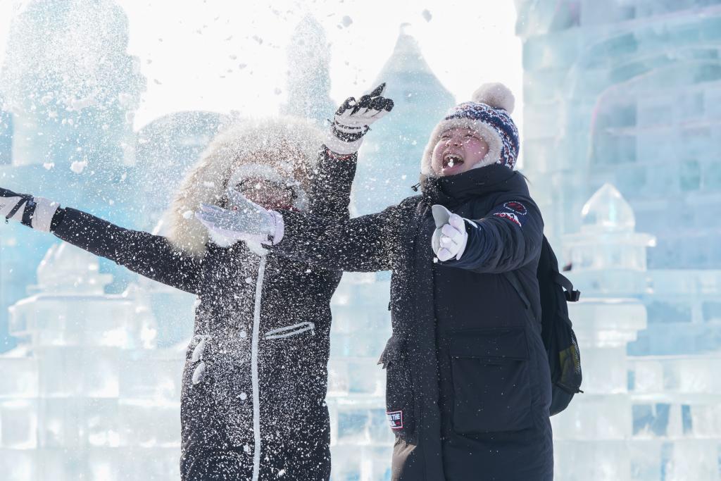 “这里宛如冰雪王国,特别壮观!这座城市非常洋气!人非常热情!我很喜欢。”在开幕式现场,山东游客王家琪和朋友连连为“尔滨”点赞。