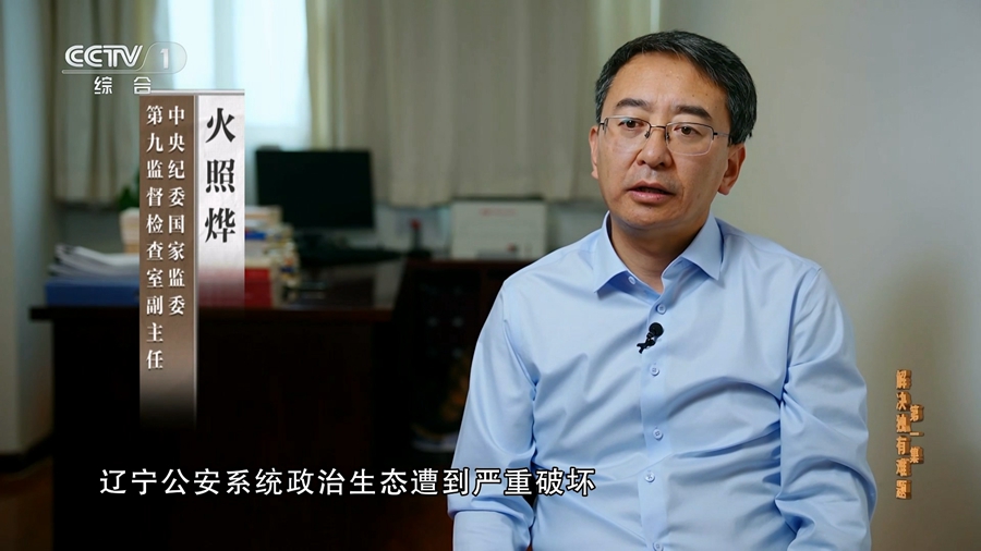 火照烨(中央纪委国家监委第九监督检查室副主任):他们都曾经是辽宁公安一号警号的佩戴者,本应以身作则,忠实履行党和人民赋予的职责任务,他们却背弃使命,执法犯法。三任厅长前“腐”后继,直接带坏了一批公安干警,严重败坏了辽宁公安系统的风气,严重玷污了辽宁公安队伍形象,造成辽宁公安系统政治生态的土壤板结。
