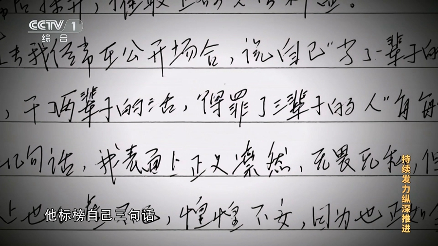 【解说词】在忏悔录里,张福生多次用“火”来比喻自己内心的贪欲,寻找这贪欲的“火源”,他归结为理想信念缺失,导致“防火机制”失灵。他写道:“我年轻时就没有立下崇高的理想,只想着读书能成为我改变命运的敲门砖;入党之时,我从来没有认真思考过党员身份究竟意味着什么,反而简单地看成是政治地位的象征。”