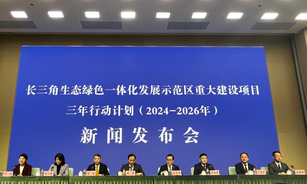 长三角生态绿色一体化发展示范区重大建设项目三年行动计划(2024-2026年)新闻发布会。新华社记者胡洁菲摄