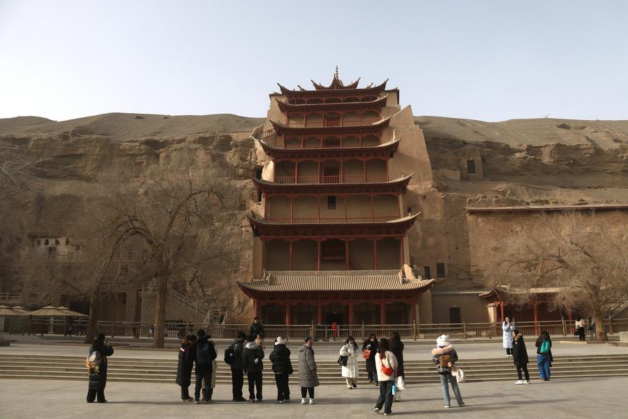 1月14日,游客在甘肃敦煌莫高窟游览。新华社发(张晓亮摄)