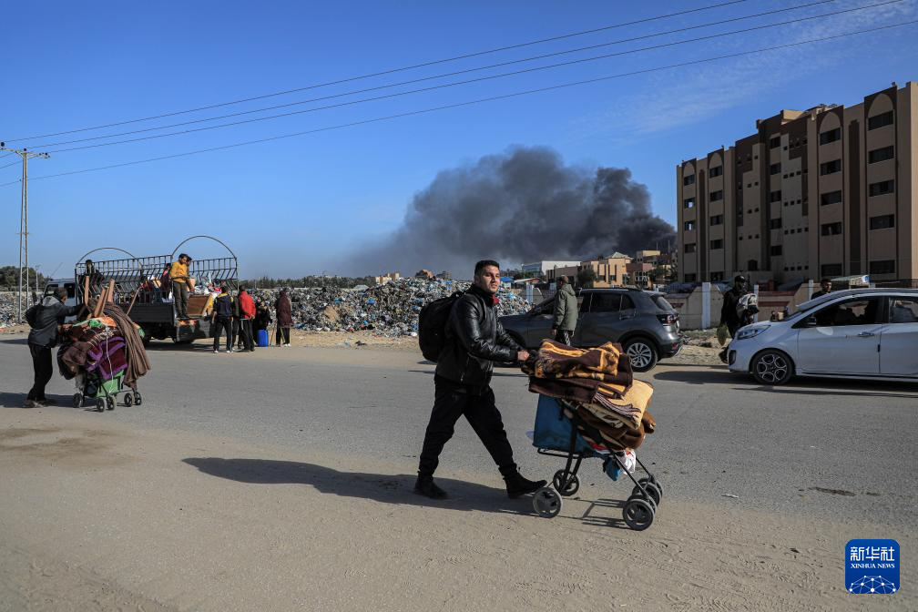 1月22日,在加沙地带南部城市汗尤尼斯,人们逃离家园。新华社发(里泽克·阿卜杜勒贾瓦德摄)