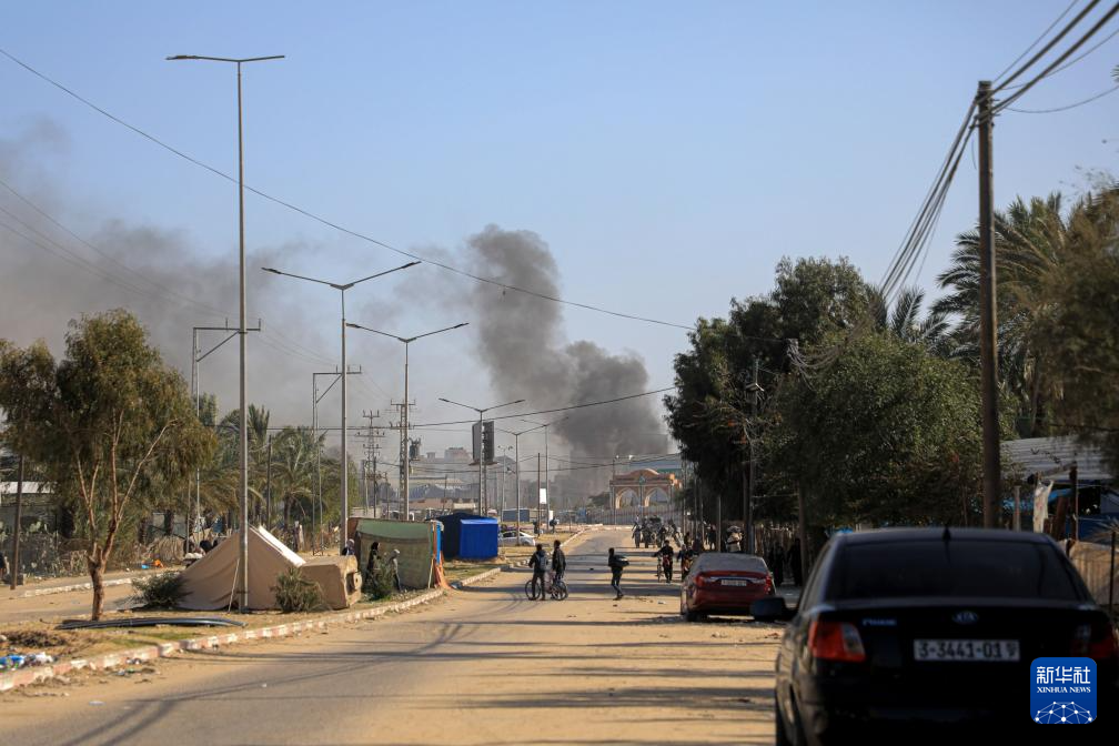 1月22日,加沙地带南部城市汗尤尼斯遭到以军攻击后升起浓烟。新华社发(里泽克·阿卜杜勒贾瓦德摄)