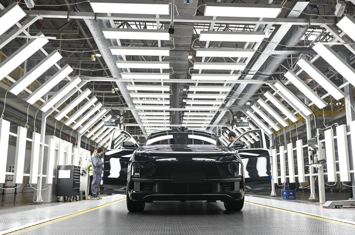 在理想汽车江苏常州基地,成品汽车准备下线。新华社记者季春鹏 摄