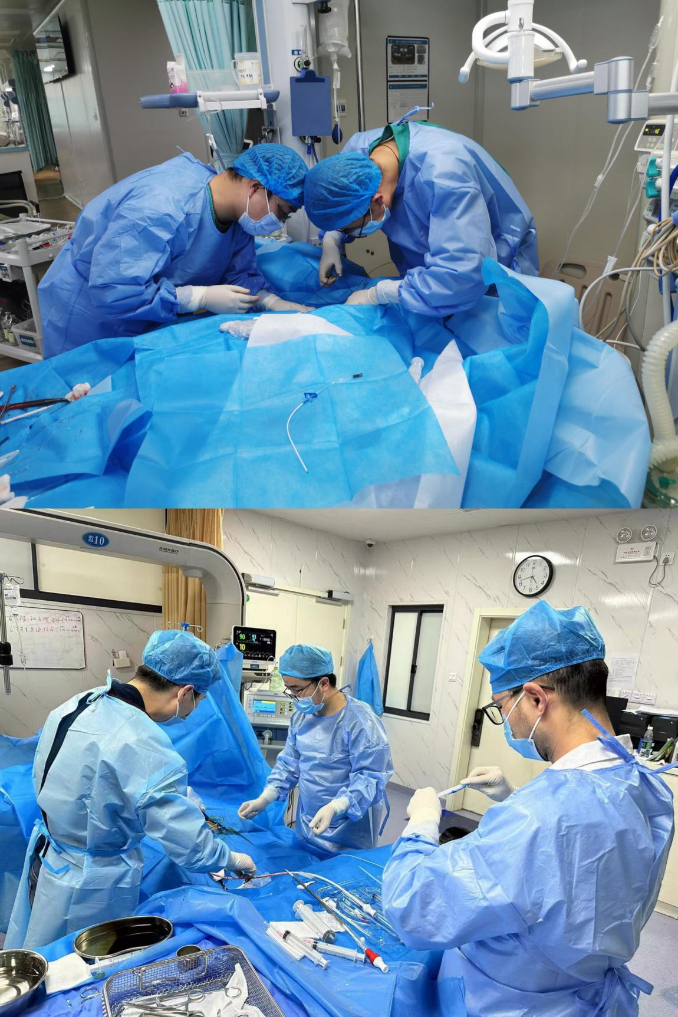 岳阳市中心医院医务人员为患者实施手术(2月4日摄,拼版照片)。新华社发(岳阳市中心医院供图)