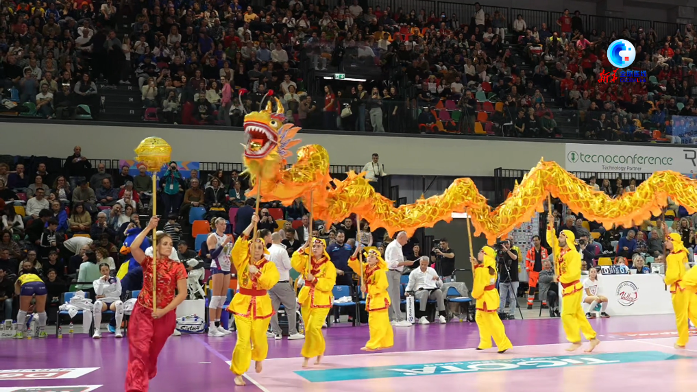 为庆祝即将到来的中国龙年春节,意大利当地中国文化爱好者在局间休息时间,为现场观众和球员献上了精彩的舞龙、舞狮等表演。