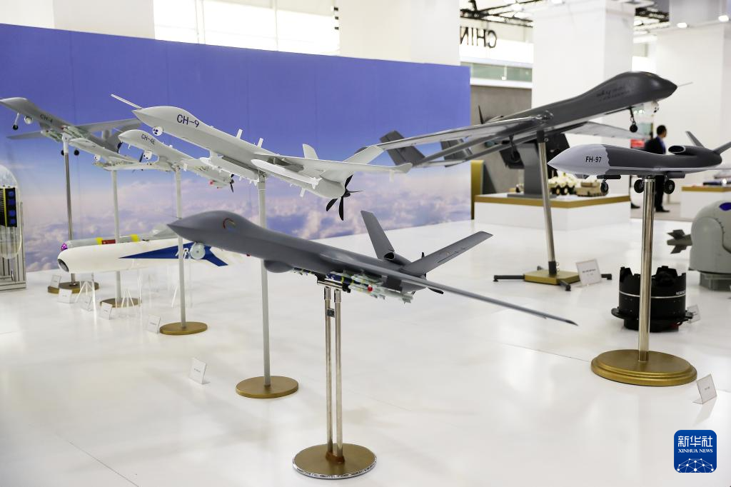 这是2月5日在沙特阿拉伯利雅得拍摄的防务展上的无人机模型。新华社记者 王东震 摄