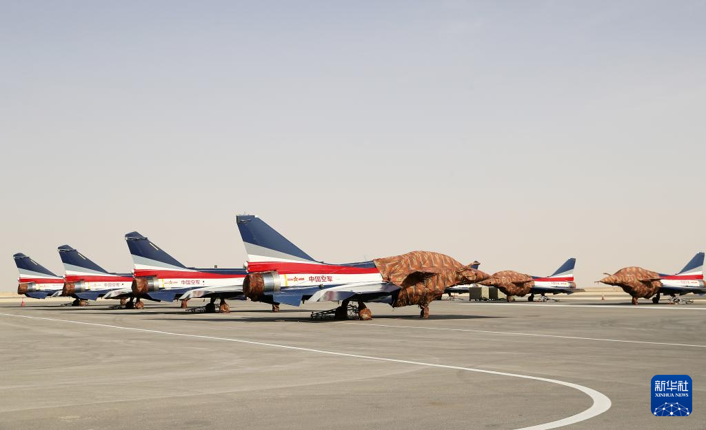 2月4日,在沙特阿拉伯利雅得,中国空军八一飞行表演队歼-10表演机停靠在防务展现场。新华社记者 王东震 摄pagebreak