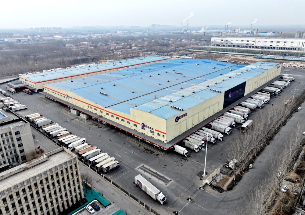 2024年2月4日拍摄的河北永清经济开发区的圆通速递北方总部基地(无人机照片)。新华社记者 王晓 摄