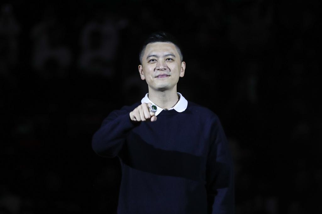 2023年11月15日,杨鸣在2023-2024赛季中国男子篮球职业联赛(CBA)常规赛第十轮比赛前领取上赛季冠军戒指。新华社记者 潘昱龙 摄