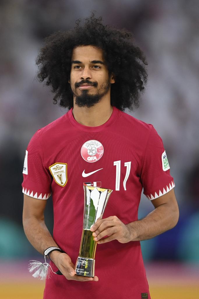 2月10日,卡塔尔队球员阿菲夫获得最有价值球员奖。新华社记者 江汉 摄