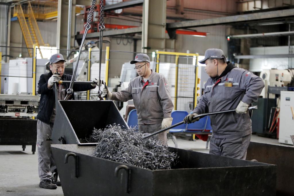 2023年4月18日,工人在位于黑龙江省齐齐哈尔市的中国一重生产车间进行生产作业。