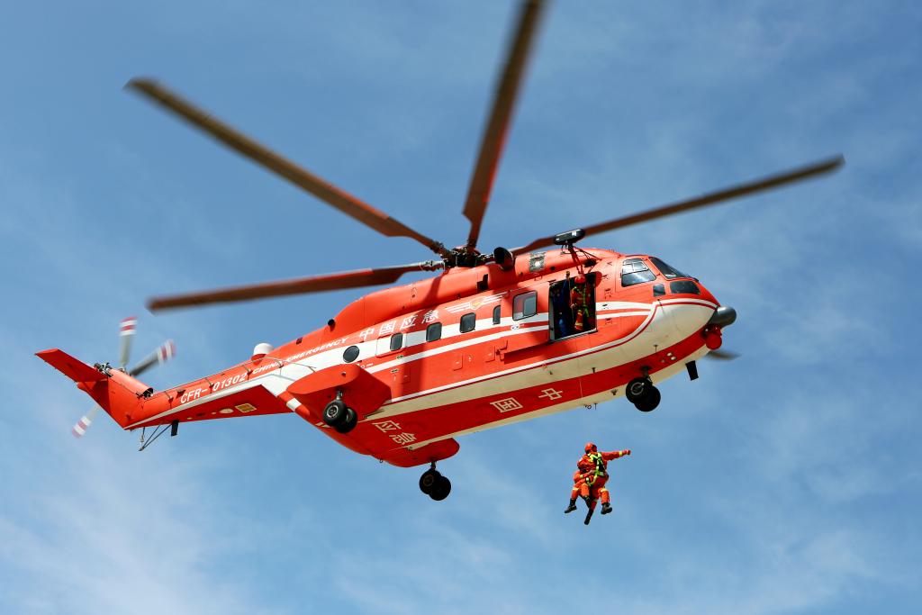 2023年5月19日,在黑龙江黑河市,哈尔滨市森林消防支队沾河大队三中队指战员在黑龙江省应急航空救援幸福站开展地空结合灭火战术训练。