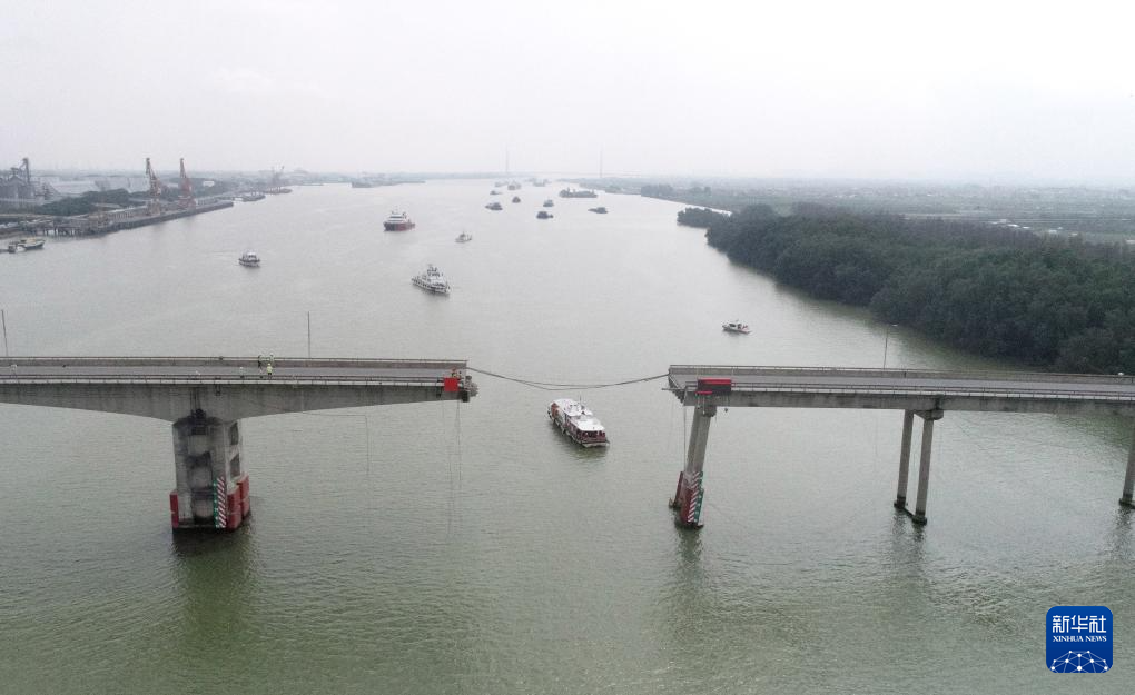 2月22日拍摄的沥心沙大桥事故现场(无人机照片)。新华社记者 卢汉欣 摄