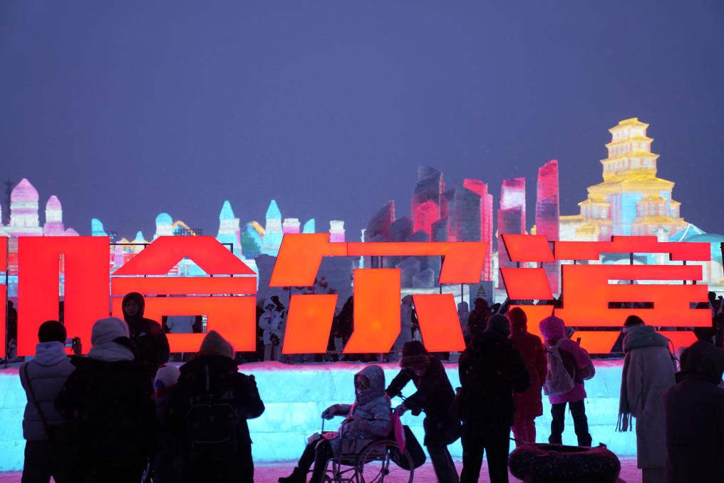 来自中国南方省份广东的张福礼和全家一起来哈尔滨欢度新年。这是他们第一次在外地旅行过年。他说:“在广东基本没机会见到雪,我们被这里的冰雪美景深深吸引,感受到祖国的地大物博,这个年过得很有意义。”