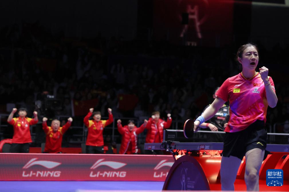 当日,在韩国釜山进行的2024年国际乒联釜山世界乒乓球团体锦标赛女子团体决赛中,中国队3比2战胜日本队,夺得冠军。