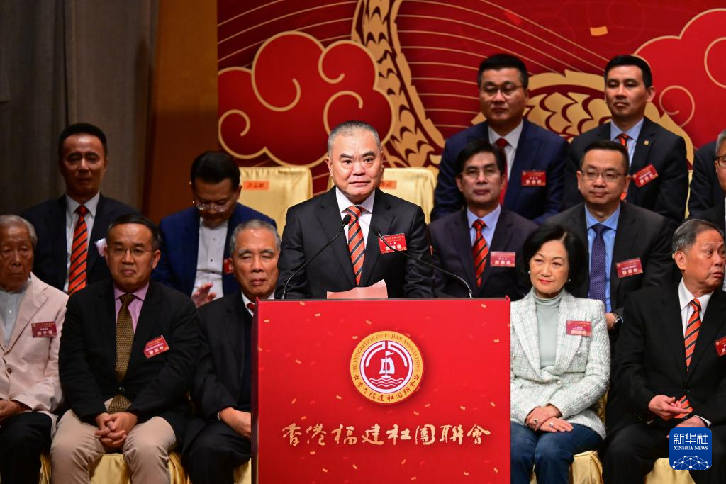 2月24日,香港福建社团联会主席施清流在活动上致辞。新华社记者 朱炜 摄