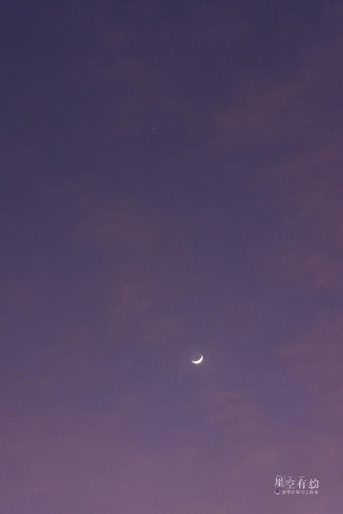 “3月14日为农历二月初五,月相为蛾眉月,木星会在这轮弯弯的月牙下偏左的位置,二者的角距离在7度左右。”杨婧说。