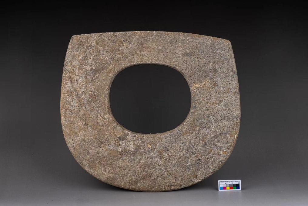 三星村遗址出土的大穿孔石钺,是迄今发现的中国史前保存完好的最大石钺。 (受访者供图)