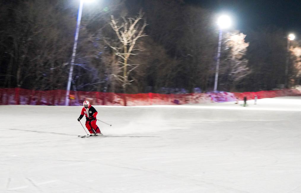 2023年12月21日,滑雪爱好者在吉林省吉林市北大湖滑雪度假区体验“夜滑”。新华社记者 颜麟蕴 摄