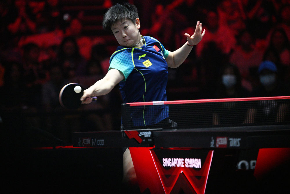 3月16日,王艺迪在比赛中。当日,在WTT新加坡大满贯女单半决赛中,她以4:0战胜队友陈幸同,晋级决赛。新华社发(邓智炜 摄)
