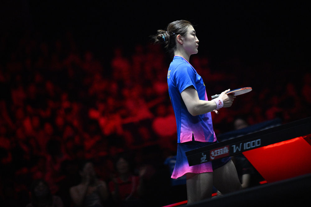 3月16日,陈梦在比赛中。当日,在WTT新加坡大满贯女单半决赛中,她以1:4不敌队友王曼昱,无缘决赛。新华社发(邓智炜 摄)