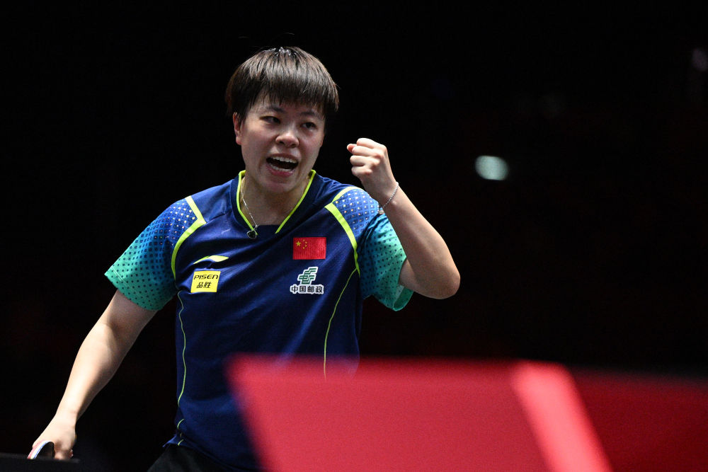 3月16日,王曼昱在比赛中庆祝。当日,她以4:1战胜队友陈梦,晋级决赛。新华社发(邓智炜 摄)