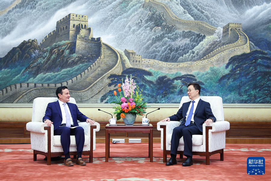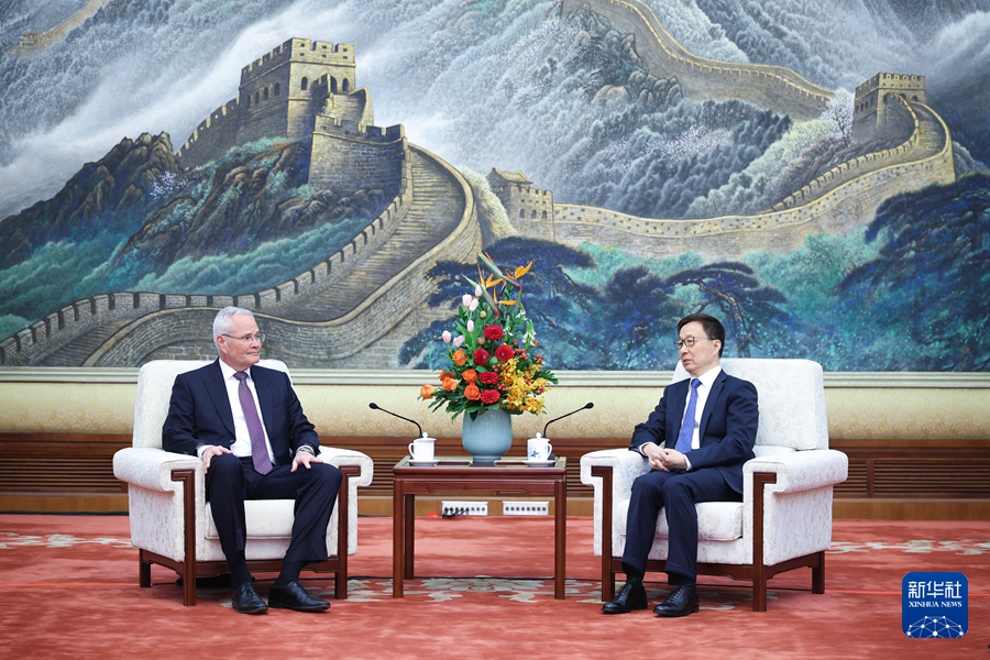 3月25日,国家副主席韩正在北京会见英国阿斯利康公司全球首席执行官苏博科。新华社记者 刘彬 摄