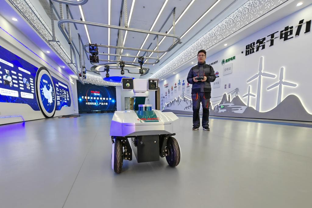 3月28日,在雄安科创中心中试基地,普龙科技有限公司工作人员在展示巡检机器人。新华社记者 杨世尧 摄