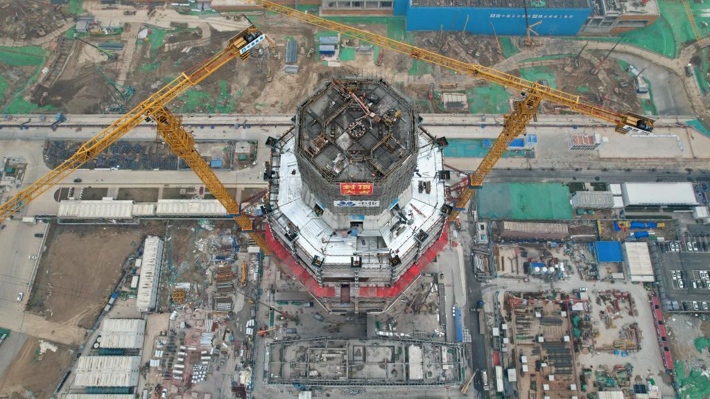 3月27日拍摄的中国中化大厦建设现场(无人机照片)。新华社记者 牟宇 摄