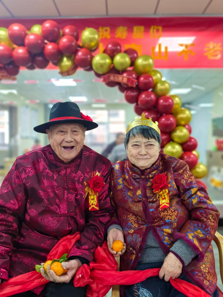 2023年12月14日,海安市恒源康复护理中心88岁的丁锦秀与73岁的张发美“喜结连理”。护理中心100多位老人参加了他们的仪式,分享了他们的幸福。
