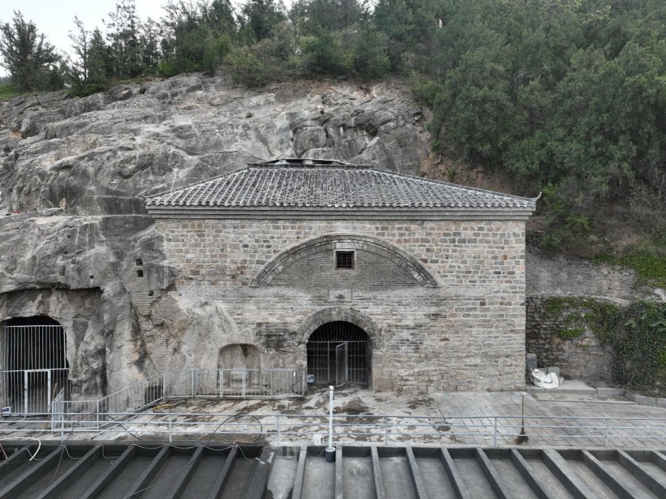修缮后的龙门石窟擂鼓台南洞现状。新华社发(龙门石窟研究院供图)