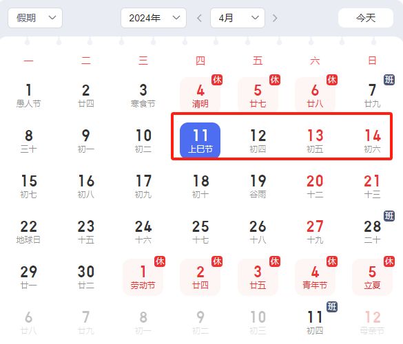 广西全区一共放假四天