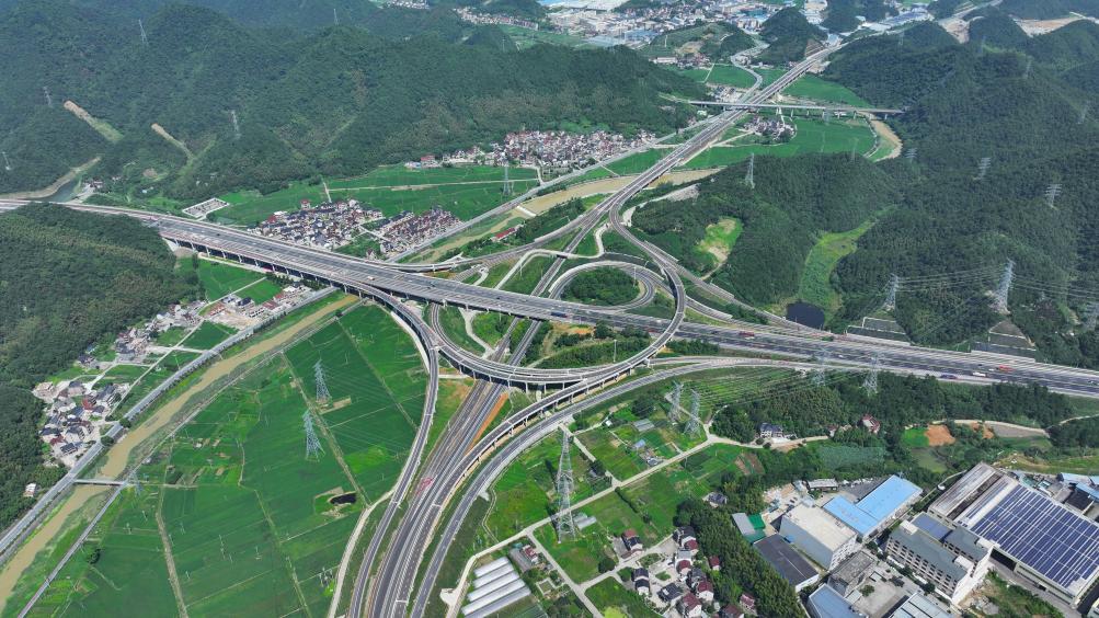 临建高速安仁枢纽(无人机照片)。(浙江交通集团供图)