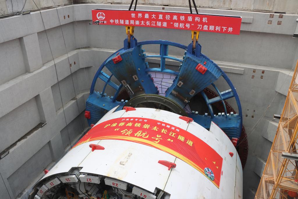 位于长江入海口的上海崇明,世界最大直径高铁盾构机“领航号”即将完成调试,计划从崇明始发穿越长江抵达江苏太仓。“领航号”盾构机今年1月在杭州下线,3月在上海合体,投入到沪渝蓉高铁的建设。这条线路将打破崇明岛不通高铁的历史。