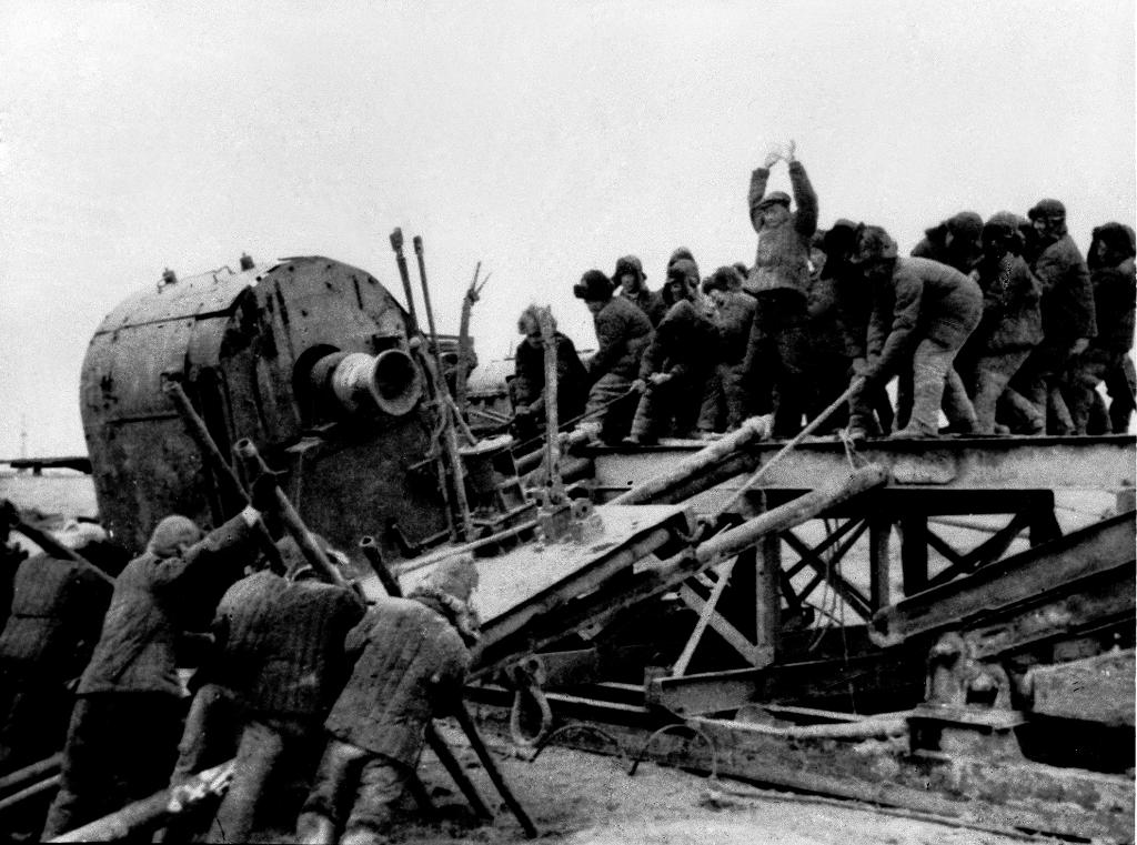 王进喜和工人们一起把5吨多重的绞车拉上2米多高的钻台。