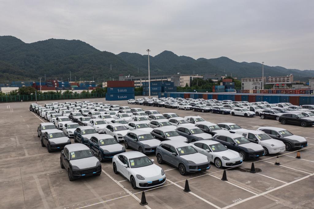 园区内,每天都有进出口车辆排队,一边是刚刚从欧洲运抵的进口汽车正在检测,一边是国产新能源汽车整装待发准备“出海”。