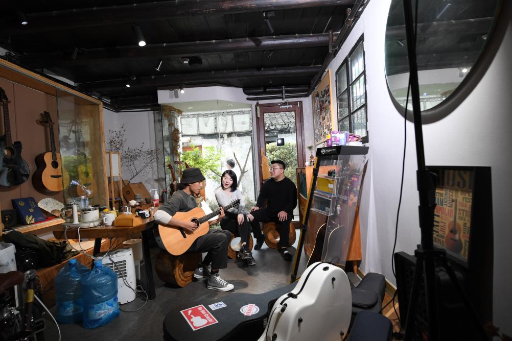 人们在小西街一个老民房改造的手作生活区做手工(4月21日摄)。