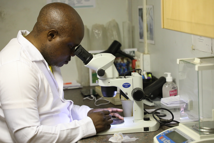 2023年4月20日,在位于刚果(金)东南部的中国洛阳钼业集团旗下的腾科丰谷鲁美矿业公司,科研人员在昆虫实验室工作。该实验室用于蚊虫和疟疾传播研究,助力当地疟疾防治工作。新华社发(受访企业供图)