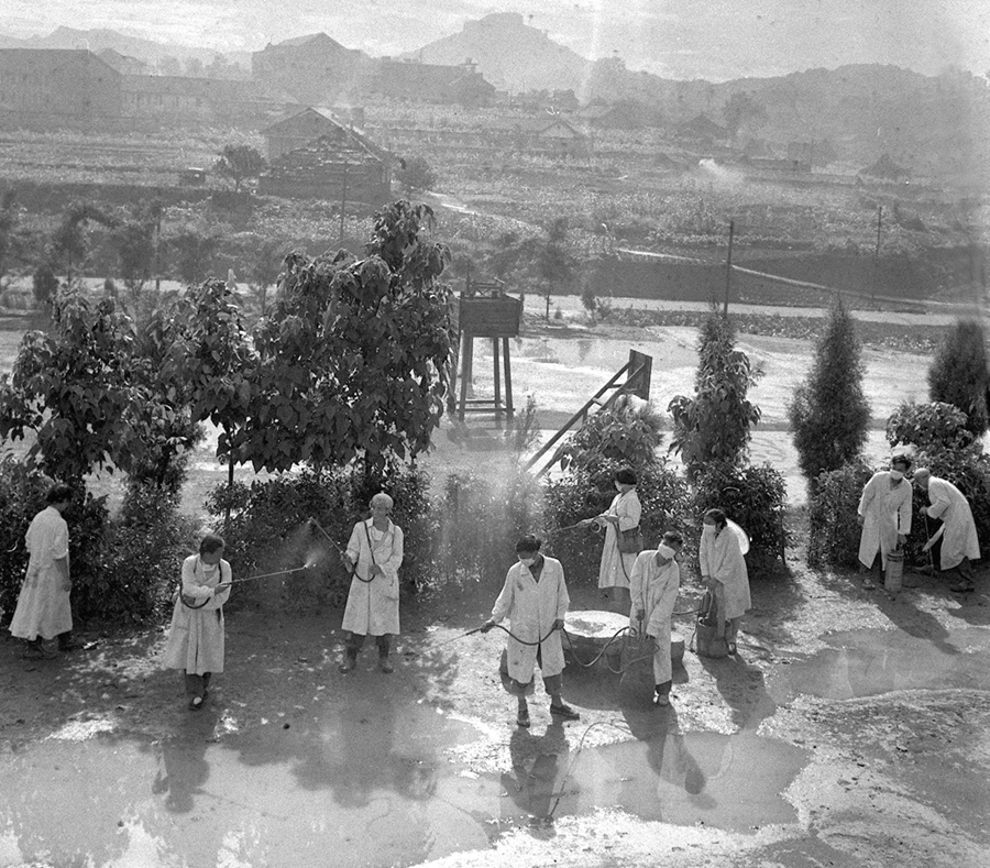 贵州省黔东南苗族侗族自治州凯里县防疫站的苗族和汉族医务工作者积极开展消灭蝇蚊的工作。过去,凯里县是贵州省的高疟区之一。(1962年8月4日发)