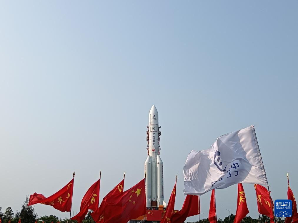 4月27日,嫦娥六号探测器和长征五号遥八运载火箭器箭组合体在垂直转运中。新华社发(黄国畅 摄)