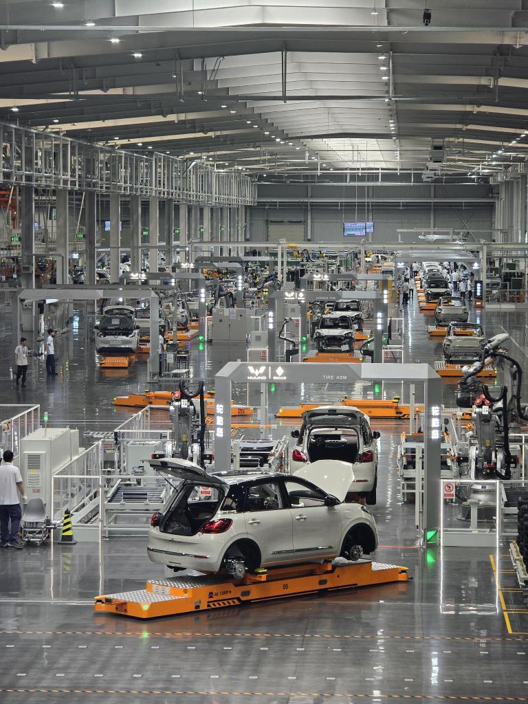 传统流水线模式通常只能生产一两款车型,但“岛式”生产可以装配多款车型。“工厂大量应用人工智能、5G、大数据等行业前沿技术。”上汽通用五菱前瞻技术规划及应用工程师潘志兴说,自2023年投产以来,精益智造工厂通过智能机器人和群控算法的应用,将传统的汽车制造工序解构重组,打破了串联式生产模式。