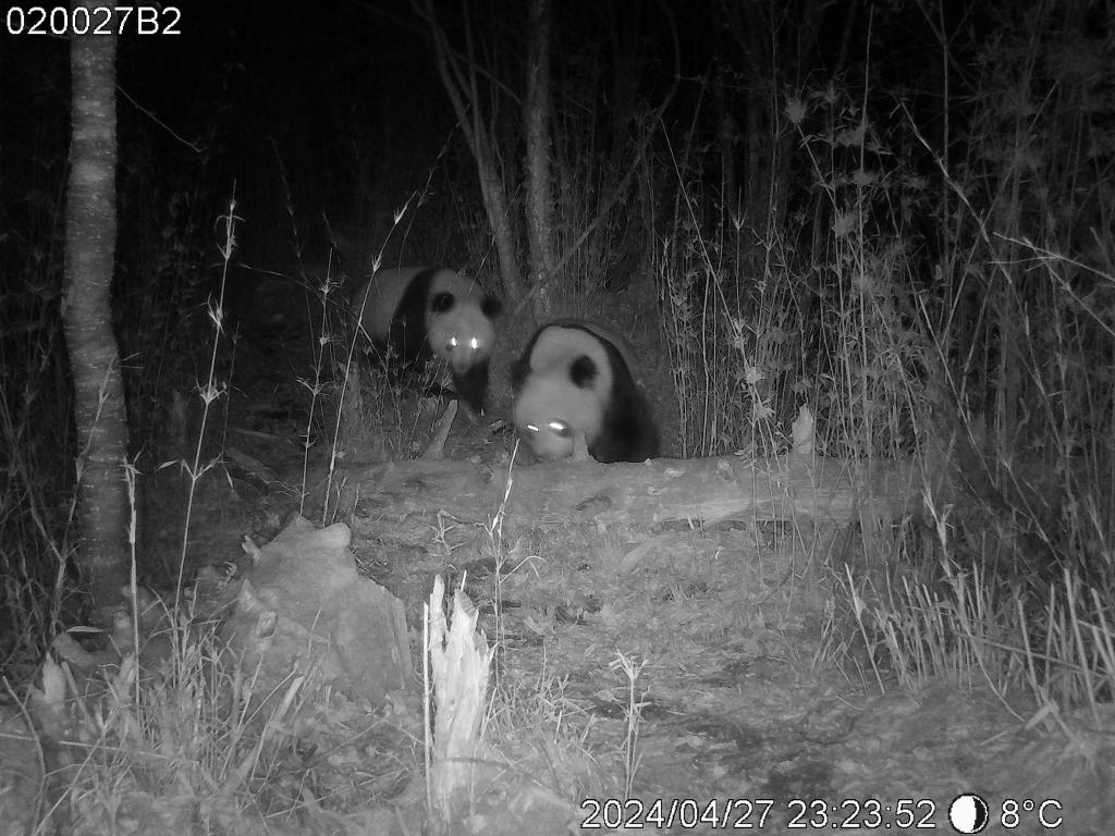 新华社兰州4月28日电(记者马莎)4月27日晚,布设在大熊猫国家公园白水江园区的一台红外相机拍摄到野生大熊猫交配画面。据悉,这是该园区首次正面拍摄到野生大熊猫交配画面。