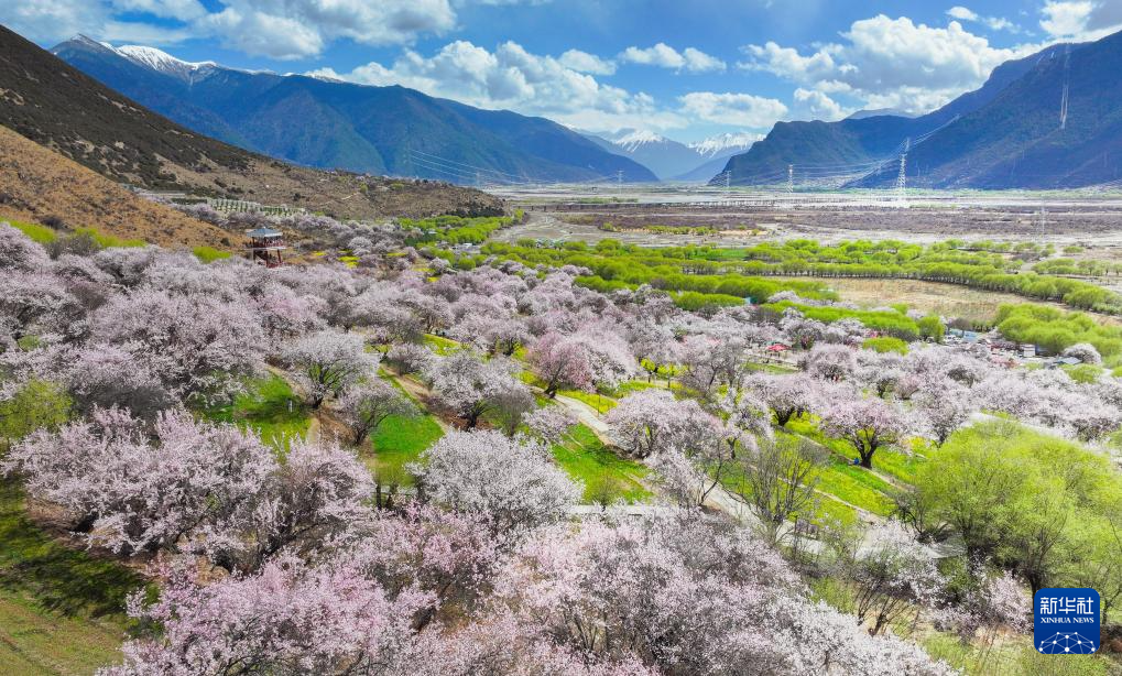 这是在西藏林芝市巴宜区拍摄的桃花(2024年4月1日摄,无人机照片)。新华社记者 丁增尼达 摄